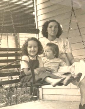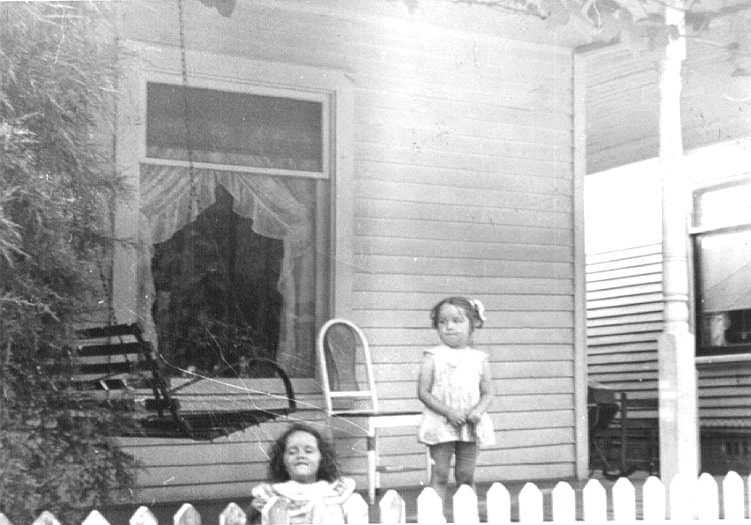 My mom, sister and me on the front porch.